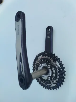 Bielas de aluminio Shimano SLX FC-M672 - 175 mm. - Modelo SLX. - Marca Shimano. - para tres velocidades, platos 22-30-40 dientes. *Se puede dar con biplato y protector de plato 2x10 22-36T No leer: transmisión hollowtech bici, grupo bicicleta montaña, mtb, btt, enduro, freeride, dh, descenso, downhill, gravel, xc, hardtrail, allmountain, Deore 3x10