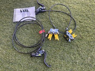 Componentes nuevos a estrenar. No se atenderán ofertas, se bloqueará directamente este tipo de usuarios. Para opción de envío incluido contacte al wats 683580238 🚵TEAM8IKE🚵♂️ Incluye: un juego de frenos Magura MT5 delantero y trasero con manetas HC 1, tornillería, pastillas imantadas, espaciadores de pistones y manual. Frenada excepcional para MTB, E-BIKE o patinete eléctrico, apto para todas las modalidades: enduro, trail, descenso, XC… Maneta HC 1 para frenar con un solo dedo, súper ergonómica y con un tacto excelente. Muy 🔝 Los frenos vienen purgados. Ltg: trasero 2100 mm,delantero 1000 mm. Pines y olivas consultarme.