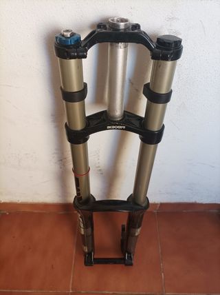 Vendo Horquilla marca Rock Shox Boxxer R2C2, para rueda de 26, con 200 mm de recorrido, doble regulación de compresión y rebote, con el tubo de la dirección cortado a 15 cm, con adaptador de freno incluido En Muy Buen Estado Descenso - Downhill - Freeride Sólo Venta en Mano No Envío