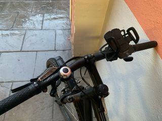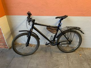 Bicicleta de montaña en buen estado. Incluye: - Cuadro de color negro. - Parrilla trasera. - Guardabarros delantero y trasero. - Bolsa de sillín. - Portabidón x2. - Portamóviles. - Timbre. - Regalo 3 candados y material de mantenimiento suficiente para 2 años.