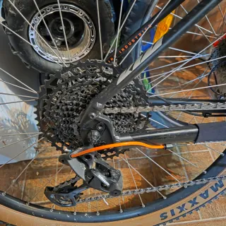 Bicicleta de montaña KTM en color negro mate. Es nueva, solo tiene 3 paseos. -Monoplato. - Cuadro de aluminio. - Ruedas Maxxis. - Frenos de disco hidráulico. - Cambio SRAM.SX -Horquilla con Bloqueo manillar.