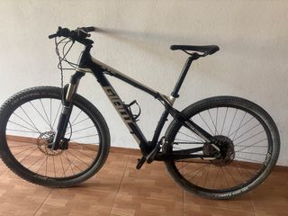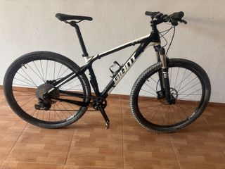 Vendo mtb. Giant XtC Advanced. Cuadro de carbono. Talla M (yo mido 1.75 cm) Gama media/alta con ruedas de 29” tubelizadas. Horquilla Rockshox Recon Silver TK Solo Air con 100mm de recorrido y bloqueo remoto desde manillar. Transmisión Shimano XT M800 de 2 x11, pero actualmente en monoplato. Frenos Shimano Deore M6396 hidráulicos de disco. Color negro mate/blanco. Su peso es de 12.10kg.