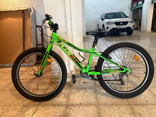 Bicicleta de montaña en buen estado, ideal para disfrutar del aire libre. - Color verde vibrante. - Ruedas anchas para mayor estabilidad. - Cuadro resistente.