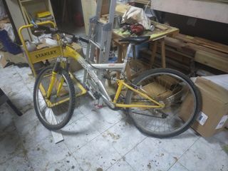Se vende bicicleta de montaña de aluminio montain 55FS.Talla M con amortiguación delantera y central con cambio Shimano,3 platos delanteros y 8 piñónes traseros con poco uso y buenas condiciones.