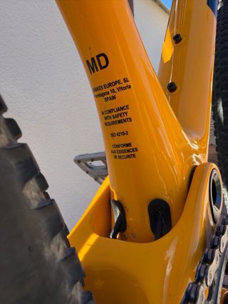 Bicicleta BH de montaña con suspensión delantera y trasera. Cuadro de carbono en color amarillo. - Ruedas Maxxis Ikon. - Frenos de disco hidráulicos. - Transmisión Shimano. 12v - Sillín Selle Italia -talla M -cuadro carbono