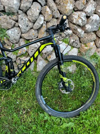 Vendo Bulls Wild Ronin de carbono, bicicleta de montaña de doble suspensión, muy cuidada y funcionando perfectamente. Cuadro de carbono Doble suspensión Tija telescópica Ruedas 29” Bicicleta ligera, rígida y muy reactiva Ideal para trail / all-mountain Mecánicamente perfecta, lista para rodar Siempre bien mantenida Tiene una marca superficial en el tubo superior (solo estética, roce de pintura, no estructural). Se aprecia en las fotos. No afecta en nada al funcionamiento ni a la seguridad. Cambios y frenos en buen estado Suspensiones funcionando suaves, mantenimiento recién hecha, y cubiertas nuevas. Tiene algún rasguño en el cuadro