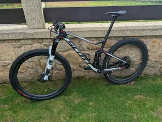 Bicicleta de montaña de carbono con doble suspensión. Se encuentra en excelente estado ya que la compré en 2024 y no la he podido usar apenas por lesión. - Cuadro de carbono. - Doble suspensión. - Tija telescópica. - Talla M - Antipinchazos Tannus Regalo portabidones, pedales y soporte para Garming. Toda la descripción técnica en las fotos