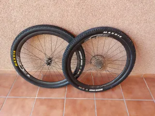 Juego de ruedas de carbono para bicicleta de montaña. - Tamaño de rueda: 29 pulgadas. - Modelo: Evo C25. - Rueda delantera 15x110mm - Rueda trasera 12x142mm - Marca de neumáticos: Maxxis. - Cassette xx1 11v - incluye discos -Peso según fabricante 1.625 gr