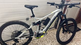 Bicicleta eléctrica de montaña con doble suspensión. Diseñada para disfrutar de rutas exigentes. - Cuadro de aluminio ligero. - Ruedas de gran tamaño para mejor agarre. - Sistema de suspensión delantera y trasera. -batería interna Bosch 625 -extender volabike 275 - talla L -2500 km -Muy bien cuidada
