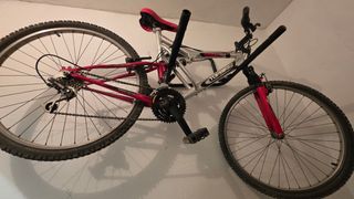 Bicicleta de montaña con doble suspensión delantera y trasera. 21 velocidades. Buen estado de cubiertas, los frenos funcionan fenomenal. No hay que hacerle nada. Ideal para principiantes, talla mediana. La vendo por no usar