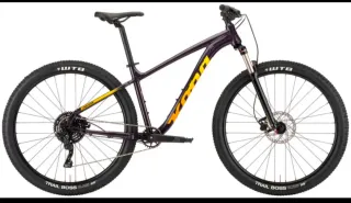 Bicicleta de montaña Kona Lava Dome en talla S, en color morado con detalles en amarillo. Usada 5 veces, año 2022. En muy buen estado. - Cuadro de aluminio. - Ruedas WTB Trail Boss 29. - Frenos de disco. - Horquilla de suspensión delantera. -Monoplato