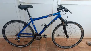 Bicicleta de montaña con cuadro plateado y detalles en azul. - Ruedas de 26 pulgadas. - Frenos V-brake. - Cambio Shimano. SOMOS UN PROYECTO DE INSERCIÓN LABORAL, donde encontraras un taller, venta de material y bicicletas de segunda mano a tu medida. Pásate a conocernos en la Plaza MORAZA No 5 Bilbao -Bizkaia- o visítanos en bizieskola. net. RECOGEMOS TODO TIPO DE BICICLETAS. ¡¡¡ No es tu bici!!! Escribe Bizieskola en el buscador de Wallapop y encontraras lo que estás buscando. BH, ORBEA, CONOR, SCOTT, KONA, SPECIALIZED, CANNONDALE, PEUGEOT, SHIMANO, MAVIC, LOOK, MERIDA, RITCHEY BIZIESKOLA