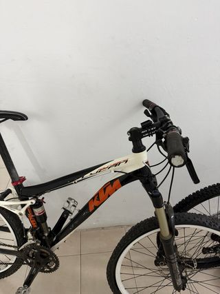 Bicicleta KTM de montaña con suspensión delantera y trasera. - Cuadro de Carbono - Horquilla RockShox. - suspension central Rockshox - Tija de carnono -potencia de carbono -Ruedas 26 pulgadas Posibilidad de vender por piezas Precio escribir y preguntar Ahi que hacerle dos arreglos