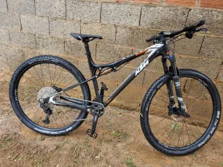 Bicicleta de montaña KTM Scarp Elite 29” Talla S - Cuadro full carbon (sin desperfectos/arañazo) - Horquilla Fox Factory SC Kashima 32 (100mm) - Amortiguador trasero Fox Float 95mm - Ruedas Shimano MT600 -Neumáticos Maxxis - Grupo Sram NX 1x12v - Frenos hidráulicos Shimano SLX