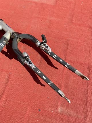 Bicicleta de montaña bergamont fastlane team con doble suspensión 29", ideal para terrenos irregulares y senderos con tan solo un peso 11,50 kilos. Talla M. - Cuadro de carbono fastlane team. - Horquilla delantera Fox 32 performance. - Amortiguador trasero float Fox elite regulable. - Rueda trasera Maxxis ardelt race al 90% y delanteras Maxxis. - grupo completo sram X0. - vielas y plato rotor rex. - manillar. potencia y tija kcnc scandium.