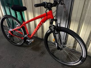 Bicicleta de montaña Rockrider en color rojo. Ideal para iniciarse en el ciclismo. - Cuadro de aluminio. - Suspensión delantera. - Frenos de disco. - Ruedas de 27.5 pulgadas.