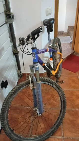 Bicicleta de montaña con ruedas de 26 pulgadas. - Cuadro Orbea de aluminio talla S - Horquilla de aire delantera Rock shock Duke 80mm - Frenos de zapata. - Tija con amortiguación -