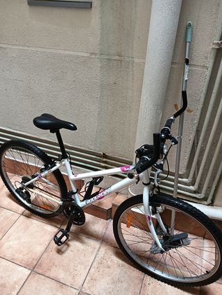 Bicicleta de montaña Rockrider en color blanco. Ruedas 26". Talla S. Buen estado y funcionamiento, tiene algunas rayas y algún punto con oxido sin importancia.