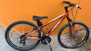 Bicicleta de montaña Trek con ruedas de 26 pulgadas. Muy pocas veces usada. - Cuadro de aluminio. - Suspensión delantera. - Frenos de pastilla. - Cambio Shimano. - Color naranja. - Talla S