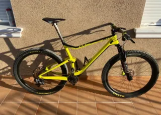 Bicicleta Scott Spark RC del año 2021. Bicicleta de montaña doble suspensión, sin pedales se vende Peso sub 10'5 kg, para el tamaño, pepino!! - Cuadro de carbono RC tope de gama - Ruedas de carbono 29" con bujes dt-swiss 240 rodamientos cerámicos y sistema ratchet. Cubiertas nuevas - Suspensión delantera y trasera con mantenimiento recién hecho rock shox sid - Frenos de disco hidráulicos Magura mt07 con discos galfer nuevos. -Sillin prólogo, no el de las fotos -Tija darimo ultraligera -Manillar a elegir darimo (precio) o progress (+150€) -Grupo entero xx1 axs electrónico NUEVO cassette plato cadena y potenciómetro.