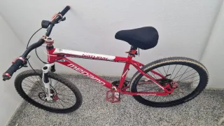 Bicicleta de montaña en color rojo, con muy poco uso, solo dos meses. - Cuadro de aluminio. - Ruedas de 26 pulgadas. - Suspensión delantera. - Frenos de disco.