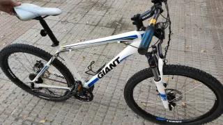 Bicicleta de montaña con ruedas de 27.5 pulgadas. Tiene muy poco uso Precio no negociable - Cuadro de color azul. - Diseño deportivo con detalles blancos.