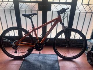 Bicicleta de montaña Conor 5200 en llamativo color naranja. La bicicleta esta nueva, no tiene desperfectos, todo esta calibrado, las suspensiones funcionan correctamente, frena bien, cambia de marchas y palto bien. La bicicleta es una talla 38