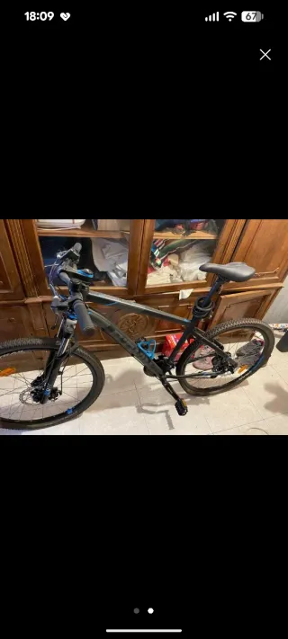 Bicicleta eléctrica de montaña ROCKRIDER ST100 con un diseño moderno y funcional. Con muy poco uso, prácticamente nueva. Precio algo negociable. - Cuadro de aluminio ligero. - Ruedas de 27'5 pulgadas. - Frenos de disco hidráulicos. - Horquilla delantera con suspensión. - Autonomía 60km Precio actual en Decathlon 999'99€