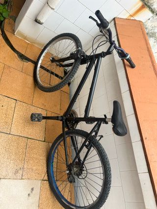 Bicicleta de montaña Rockrider 340 en color negro. - Cuadro de aluminio. - Ruedas de 26 pulgadas. - Frenos V-brake. - Suspensión delantera. Puedo negociar algo. Apenas se ha usado. Merece la pena verla. Regalo dos cámaras de ruedas sin abrir.