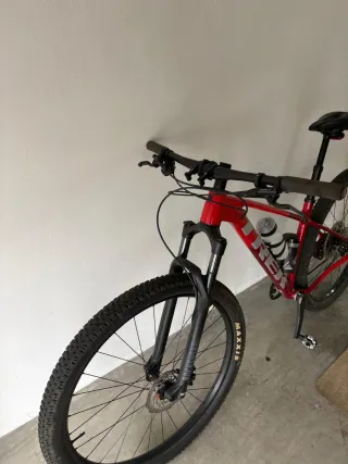 Bicicleta de montaña Trek Xcaliber 6 en color rojo. Ideal para rutas y senderos. - Cuadro de aluminio. - Ruedas de 29 pulgadas. - Frenos de disco hidráulicos. - Transmisión Shimano.