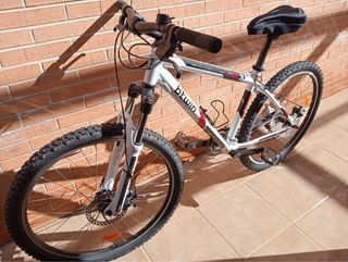 Bicicleta de montaña en color plateado, lista para tus aventuras. Tiene un poco la espuma del sillón rota por lo demás cambios,frenos todo perfecto y arreglado - Cuadro de aluminio. - Suspensión delantera. - Frenos de disco. - Ruedas de 26 pulgadas.