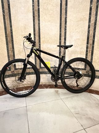 Bicicleta de montaña con ruedas de 27.5 pulgadas. - Cuadro de aluminio. - Frenos de disco hidráulicos - Suspensión delantera con bloqueo - Monoplato de 9 velocidades - Cambio shimano -Talla L