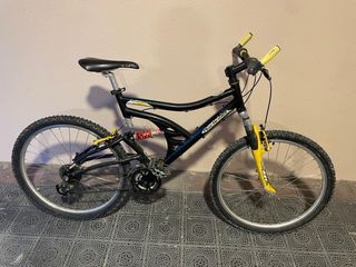 Bicicleta de montaña en color negro con doble suspensión. - Cuadro de aluminio. - Frenos de disco. - Ruedas de 26 pulgadas. - Cambio Shimano.