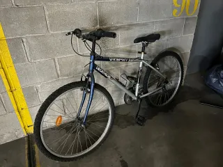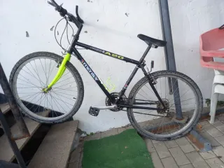 La vendo porque llevo un año que no la uso. Está un poco gastada, con las ruedas desinfladas, pero funciona perfectamente. La IA de aquí la describe como: Bicicleta de montaña con cuadro gris y horquilla delantera verde. - Ruedas todoterreno. - Sillín negro. - Portabidón.