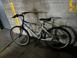 Bicicleta de montaña (MTB) Peliser Coyote. Cuadro rígido (sin suspensión trasera) con suspensión delantera, ideal para ciudad, caminos y paseos. Frenos V-brake (de zapata). Ruedas tipo MTB (probablemente 26”, típico en este modelo). Color azul. Incluye portabidón. Se vende por no uso. Funciona y está lista para rodar. Entrega en mano en Barcelona (por zona de trabajo) o Sant Pol de Mar. - Cuadro de aluminio. - Suspensión delantera. - Frenos de disco. - Cambio Shimano.