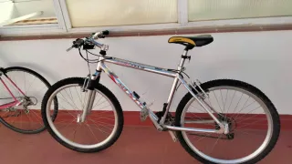 Bicicleta de montaña rígida con ruedas de 26 pulgadas. Ideal para senderos y caminos. - Cuadro de aluminio. - Horquilla de suspensión delantera. - Frenos de disco. - Transmisión Shimano. Nota: lo único que tiene algo pasado es el pedalier, que eso se arregla en un santiamén y a correr