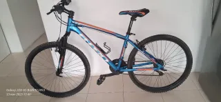 Bicicleta de montaña para adultos, con un diseño llamativo en naranja y azul. Ideal para paseos y aventuras. Falta limpiarla y enderezar la rueda trasera, ha estado mucho tienpo sin usarse, puedo hacer alguna rebaja, NO RECIBO BIZUM, NO HAGO ENVIOS, - Cuadro de metal resistente. - Ruedas todoterreno. - Sillín con detalles naranjas. - Manillar ergonómico.