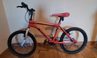 Vendo bicicleta Rockrider ideal para niños/as. Muy poco uso, está como nueva. Ruedas anchas con buen agarre, frenos de disco delanteros, muy cómoda y resistente. Perfecta para paseos y aprender a montar con seguridad. Bicicleta infantil de montaña en color rojo. - Cuadro de aluminio. - Ruedas de 20 pulgadas. Se vende por no usar.