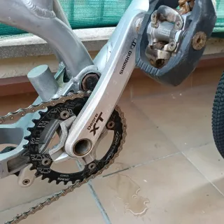 Bicicleta de montaña montada a piezas -Suspension sr suntour -Manillar ritchey wrc -Frenos traseros shimano xt (gama alta) -Frenos hidraulicos delanteros shimano deore -Sillin Selle Italia -Funda roja de mangos del manillar