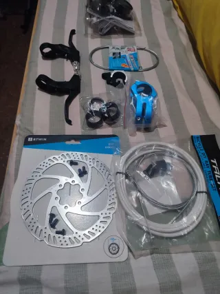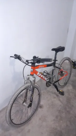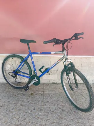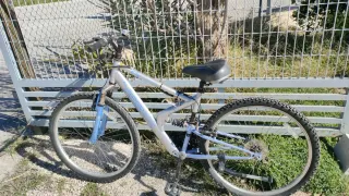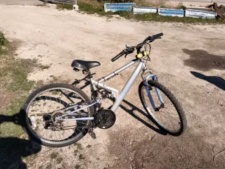 Bicicleta de montaña en color azul. - Cuadro de aluminio. - Suspensión delantera y trasera. - Frenos de disco. Incluyo las piezas de repuesto que se ven en las fotos. La vendo por falta de tiempo para usarla. Tiene sus cosas por los años pero la bici funciona.
