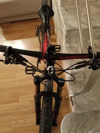 Bicicleta de montaña Scott Scale, talla S. - Cuadro de carbono. - horquilla Fox Kashima (revisada hace 6 meses) - Ruedas Gurpil de aluminio de 27'5 pulgadas, ancho interno de 27,5. -Bielas xt -Frenos XT,(liquido de frenos recién cambiados). -Cambio Shimano Xt y Xtr 11 v. -con 3 cubiertas más y un plato adicional Se puede ver sin compromiso. Aceptaría cambio por bicicleta de 29 ,talla M, de características similares. -Peso 10,6 kilos