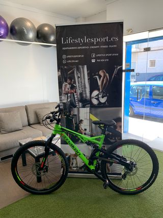 Bicicleta de montaña Anakon SK8 en color verde, con ruedas de 27.5 pulgadas. Se encuentra en perfecto estado, como nueva. - Cuadro de aluminio. - Suspensión delantera y trasera. - Frenos de disco hidráulicos. - Cambio Shimano.