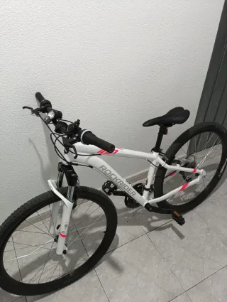 Bicicleta de montaña Rockrider ST100 en color blanco. Diseñada para iniciarse en el ciclismo. Solo recoger en mano en Fuenlabrada Madrid. No se hacen envíos - Cuadro de aluminio. - Frenos de v-brake - Suspensión delantera. Para altura entre 1,60 y 1,75 Usada solo una vez