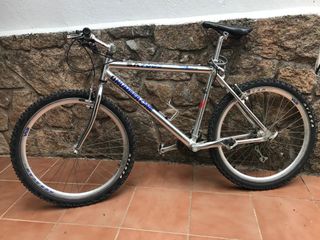 Bicicleta de talla S, en buen estado general, lleva un tiempo parada, le falta un cuerno, componentes Shimano, le entran bien las marchas y los frenos funcionan bien, aunque necesitaría un engrase.