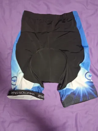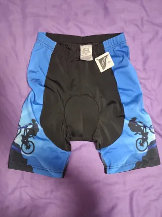 Culotte de ciclismo con diseño deportivo. - Tejido principal negro. - Paneles laterales y traseros en azul con estampado de ciclistas. - Badana incorporada.