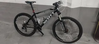 Bicicleta de montaña Scott B-Pro M850, de rueda 27.5. Talla M Está vinilada como Scott, pero si alguien quiere el aspecto original se puede lo puedo quitar. Hay una foto que se ve como es sin vinilos. - Cuadro de aluminio. - Suspensión delantera Manitou Marvel, una gran horquilla, a la altura de una fox - bielas cambiadas por unas xt y platos q rings ovalados. - Frenos de discos Shimano. En su momento fue una gran bicicleta de 1000€.