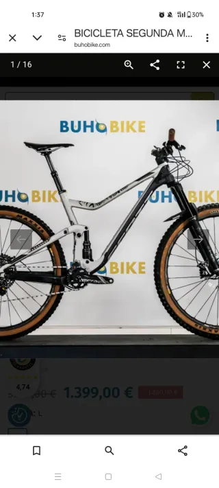 Vendo bicicleta eléctrica de montaña Orbea Wild FS10 prácticamente nueva, con solo 400 km en el odómetro y en perfecto estado. Contáctame por WhatsApp para más fotos o vídeos e información sobre la bicicleta611258601 Se incluye la factura original con garantía hasta mayo de 2026 Talla de cuadro XL, apta para ciclistas de entre 185 y 195 cm de altura Capacidad máxima de carga: 120 kg Horquilla de suspensión neumática (Fox 34 Float Performance 120) Manetas de cambio y freno Shimano Transmisión Shimano XT Motor Bosch Performance CX