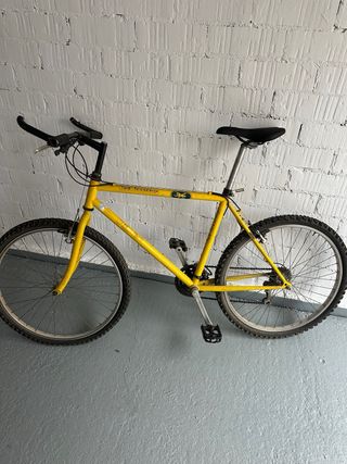 Bicicleta de montaña en color amarillo. - Cuadro de metal. - Ruedas todoterreno. - Sillín ajustable. Tal cual esta en las fotos, le falta la camara de la rueda delantera