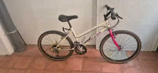 Bicicleta de montaña Condor en color blanco y detalles en rosa. Bicicleta antigua pero puesta al punto para circular. Para las llamadas y WhatsApp 625803054 - Cuadro de aluminio. - 18 velocidades. - Frenos V-Brake. - Ruedas de 26 pulgadas.