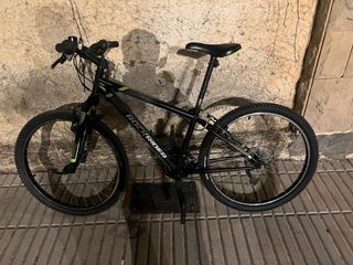 Bicicleta de montaña Rockrider en color negro. Ideal para iniciarse en el ciclismo. - Cuadro de aluminio. - Ruedas de 27.5 pulgadas. - Frenos de tambor. - Suspensión delantera. Nueva con las ruedas recién cambiadas Precio negociable